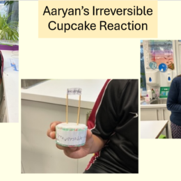 However, Bake Off fans with a sweet tooth, would have been even more impressed by the chemical reactions Molly, Aaryan, Kiana and Kiarash produced overnight! Molly baked a whole cake to demonstrate an irreversible reaction of how the cake ingredients combine and then cook into a totally different form. It was proudly brought into school! Aaryan made a batch of ‘Irreversible Reaction Cupcakes’ and created individual home-made banners and toppers for each cake. Kiana and Kiarash joined forces to make a delicious batch of beautifully decorated cupcakes to demonstrate their irrepressible reaction and patisserie skills.
