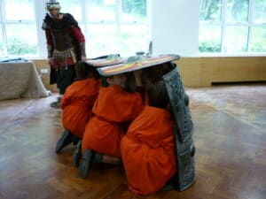 Kiara: “Soon, I was a crazy, cool Celt (still in my school uniform). Suddenly, all those Rotten Romans marched in and the fight began. The Romans formed a tortoise shape. We threw rocks but their shields were too strong.”